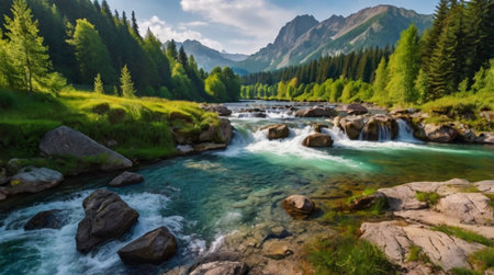Majestic Flow: Exploring the Enchanting Mountain Stream in a Beautiful Valley