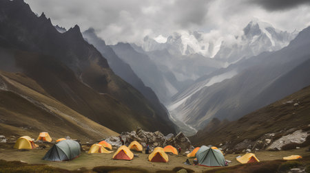 Camping tents in the mountains of the Himalayas, Nepal