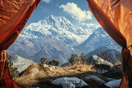 Stunning view of the snow-capped mountains from the tent
