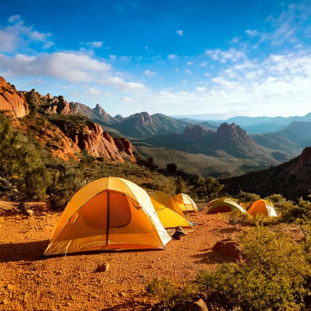 Adventurers camping in scenic wilderness locations in mountain