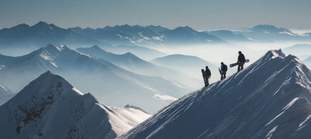 hikers on a top of a mountain. AI generated content