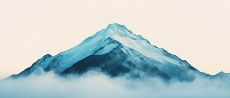 Beautiful alpine mountain landscape with snow covered peaks in the clouds