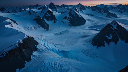 Generative AI Embracing twilight, frozen tundra, deep shadows, crisp ice formations, detailed Antarctic realism