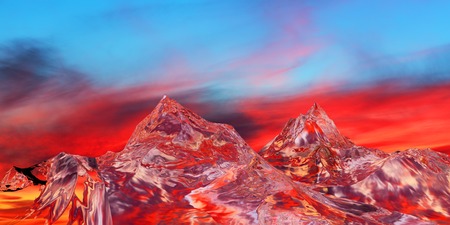 Mountain range under cloudy sky. Snowy peaks of mountains rocks