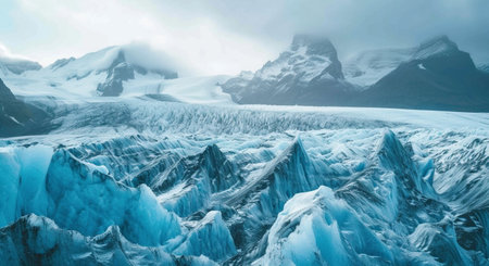 A stunning view of a glacier with icy blue tones AI generated illustration