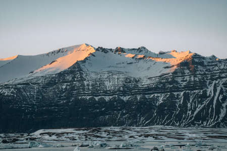 Icelandic winter landscape. Aerial view of Jokulsarlon glacier.