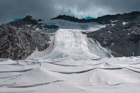 Presena Glacier covered with a plastic sheet to prevent the glacier from melting in summer (Alps, Trentino, Italy, Europe)