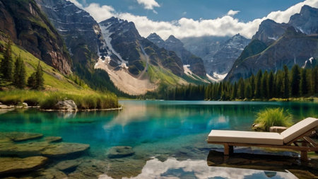 Mountain lake in the Canadian Rockies. The concept of active, ecological and photo tourism