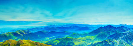 Panoramic view of the mountains in the summer. Beautiful landscape.