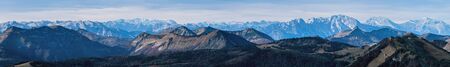 Picturesque autumn Alps mountain view from Schafberg viewpoint, Salzkammergut, Upper Austria.