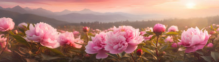 Peonies Field Blurred Sunrise Banner Background