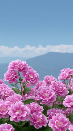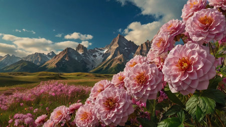 A pink flower meadow mountain landscape clear sky serene nature scene