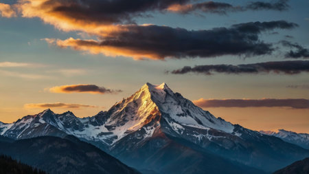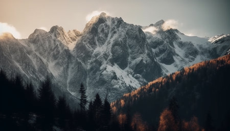 Majestic mountain peak in panoramic winter landscape, perfect for hiking generated by artificial intelligence