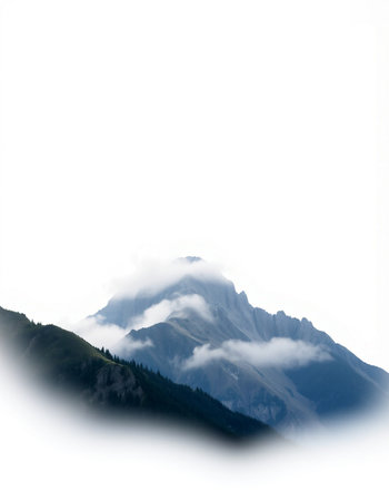 Mountain peak in the clouds, isolated on white background, 3d illustration