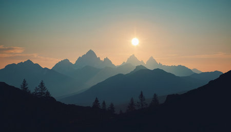 A breathtaking silhouette of mountains set against a stunning gradient sunset sky, capturing the essence of tranquility and the beauty of nature in a serene landscape.