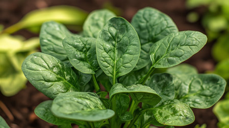 Fresh spinach leaves growing in a well-maintained garden during the late spring season