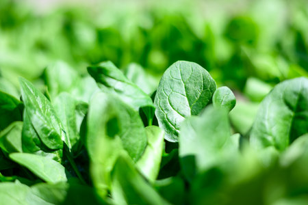 Macro shot of lush green spinach leaves