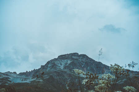 Mountain peak in clouds. Caucasus Mountains, Georgia, region Gudauri.