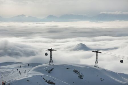 The cable car in Caucasus mountains. Sochi area, Roza Khutor, Russia