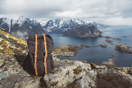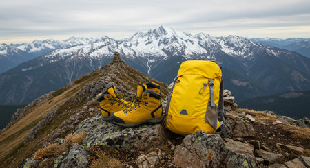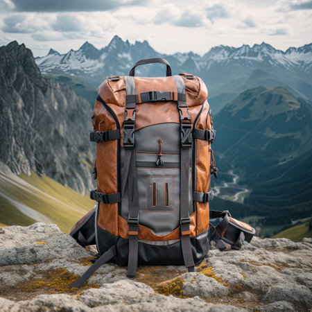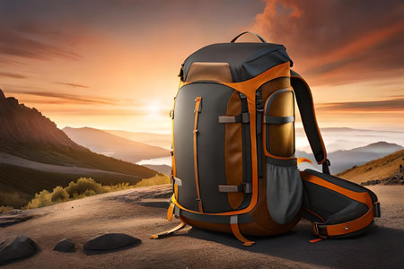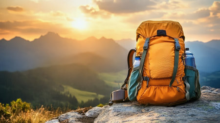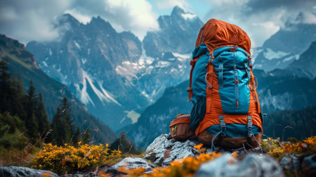 Adventure backpacking gear at mountain s edge, illustrating travel hacking and exploration concept