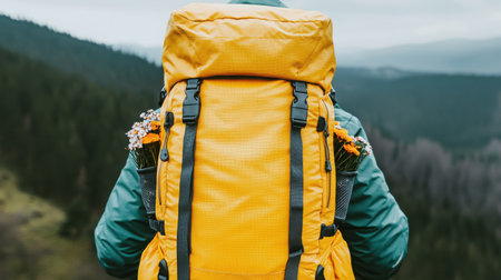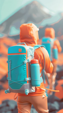 A vibrant hiking backpack combines style and functionality, designed for outdoor adventures. Perfect for camping and trekking with durable materials and ample storage.
