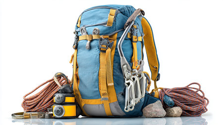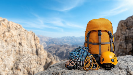 a backpack and climbing gear ready for a day of adventure, created with generative ai
