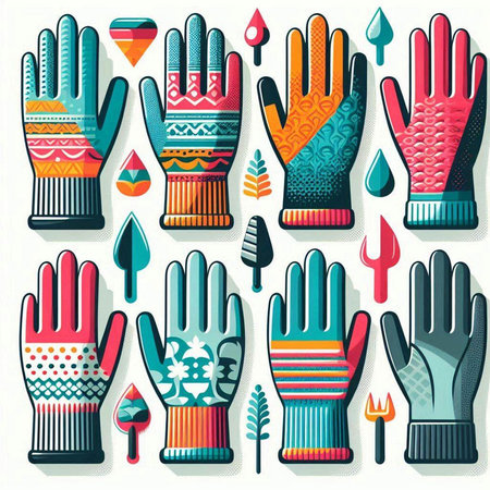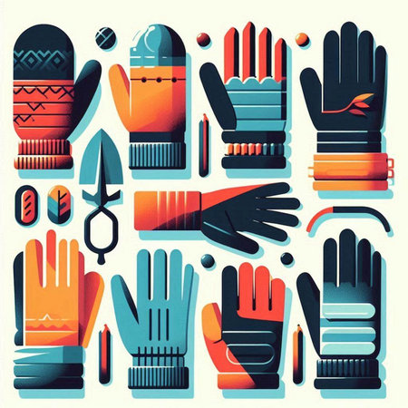 Vector illustration of different types of gloves. Set of different types of gloves.