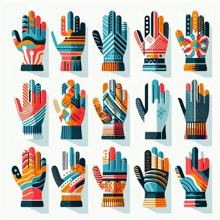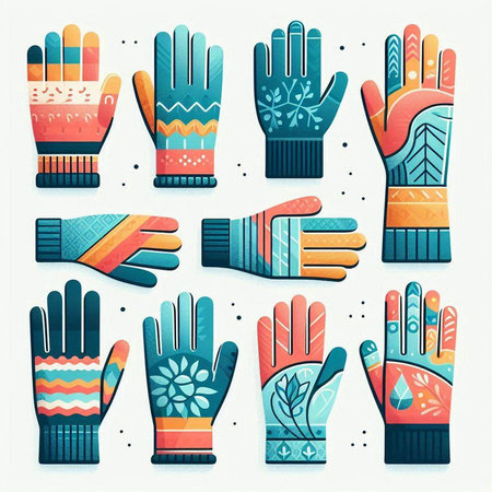 Set of winter gloves with different patterns. Vector illustration in flat style.
