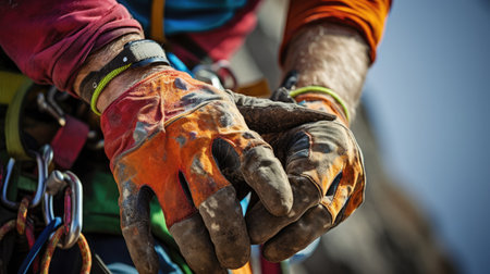 man climbing belayer with the rope and carabines