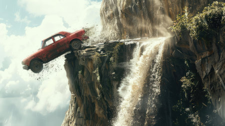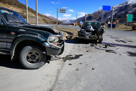 Okanagan Falls, Penticton, British Columbia, Canada - August 11, 2019: Vehicle accident flipped over on the side of the road during a rainy day.