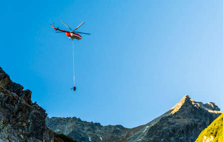 Stary Smokovec, Slovakia - October 12, 2018: Helicopter Type Mil Mi-8T with the transport of goods to the mountain hut.