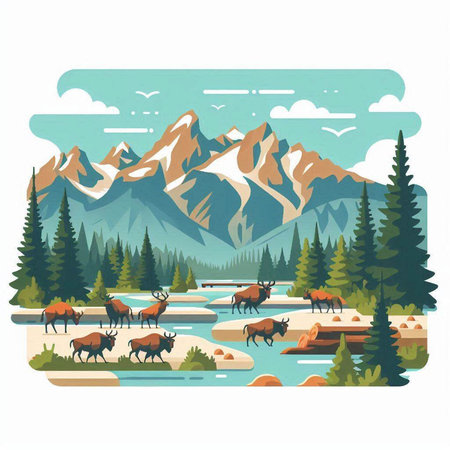 This image captures the rich tapestry of wildlife that calls the landscape home throughout the changing seasons. From playful interactions to serene moments of solitude