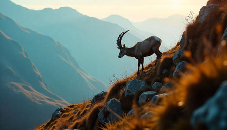 Majestic Ibex Silhouette in Mountain Landscape at Sunset