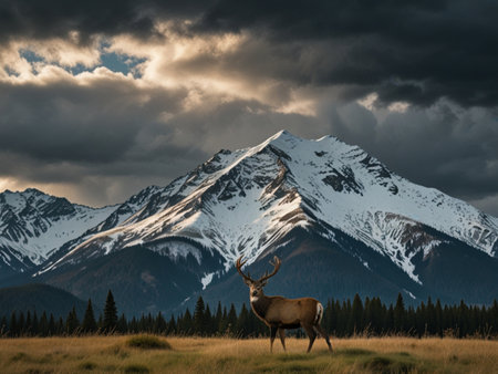 Majestic Red Deer (Cervus elaphus) in the Canadian Rockies
