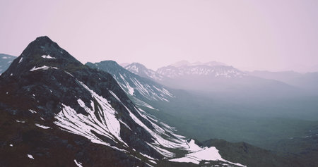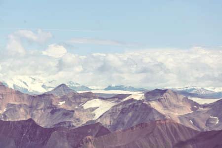 Picturesque Mountains of Alaska in summer. Snow covered massifs, glaciers and rocky peaks. Beautiful natural background.