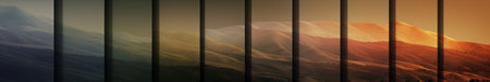 Mountain range at sunset. Panoramic view of the mountains.