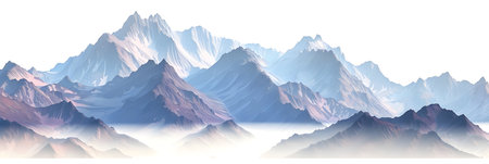 A stunning view of snow-covered mountains enveloped in a gentle mist, creating a serene atmosphere. Ideal for nature lovers and adventure enthusiasts seeking inspiration.