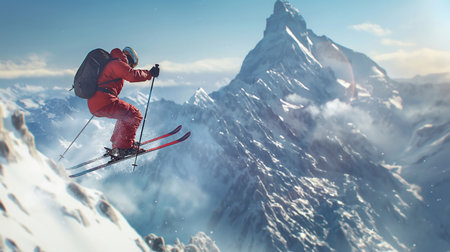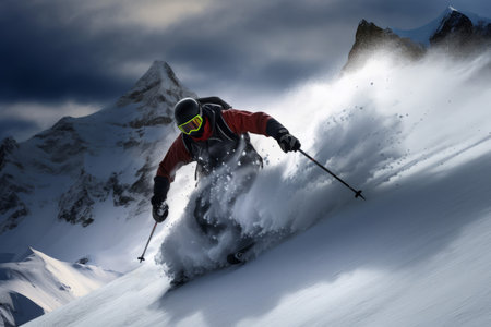 Adventurous Skier in Action Extreme Winter Sports Generative AI