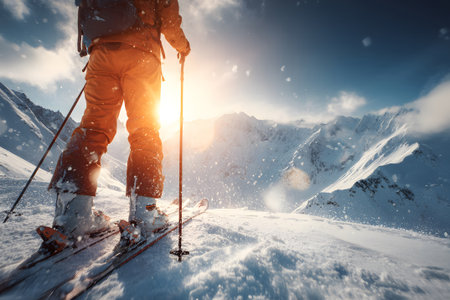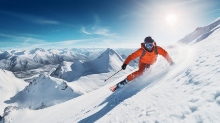 Sport man skiing on snow mountain in winter . Active and extreme sport. Peculiar AI generative image.