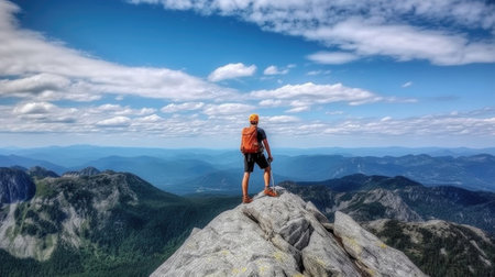 One person hiking mountain peak, enjoying beauty in nature generated by artificial intelligence