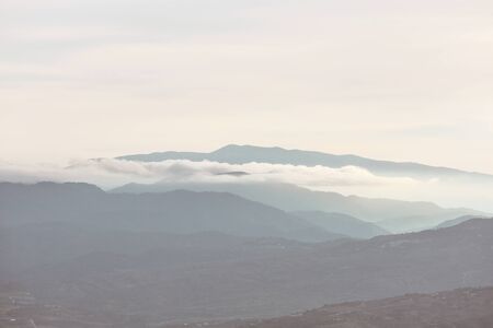 Cyprus mountains in myst or fog, beautiful green nature landscape.
