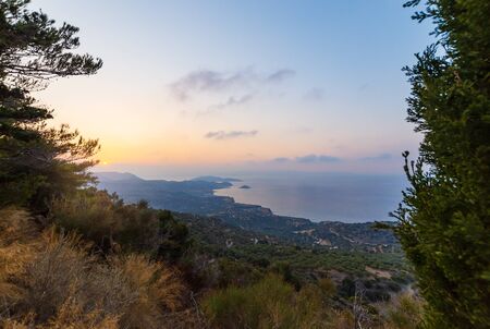 Beautiful mountain landscape at sunset, Rhodes, Greece