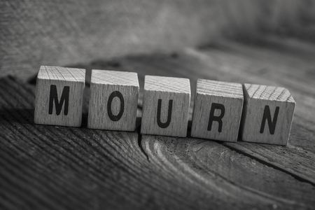 Macro Of The Word Mourn Formed By Wooden Blocks On A Wooden Floor