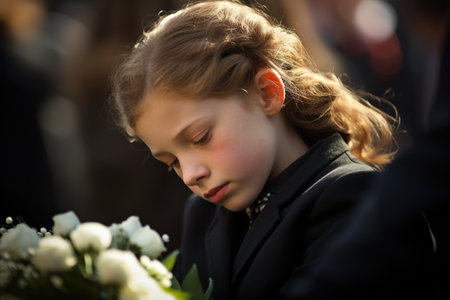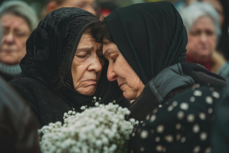 A quiet farewell, a tender moment of the last meeting at the funeral, enveloped in silence and deep emotions of the departed