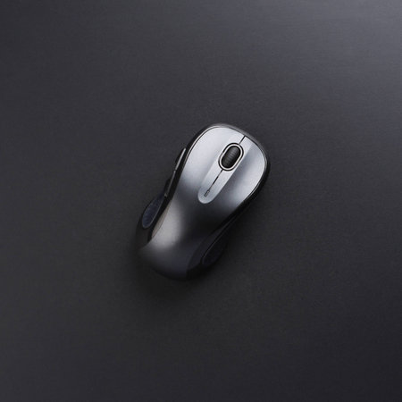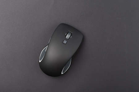 black wireless mouse close up on a dark background