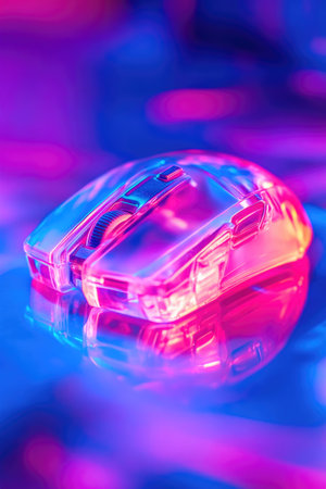 White pc mouse in red-blue neon light