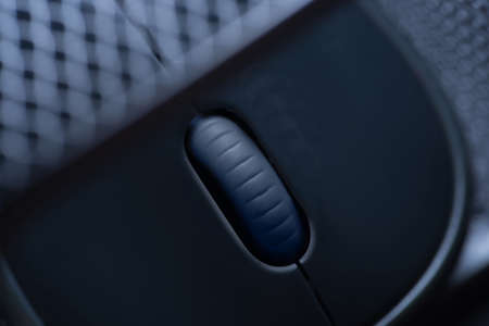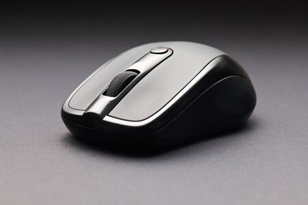 Computer mouse on a dark background, close-up, selective focus
