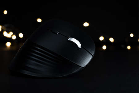wireless black vertical mouse on black background with lights, latest technology, ergonomic mouse on black background. mouse for designers. mouse for gamers. joystick. spk7614