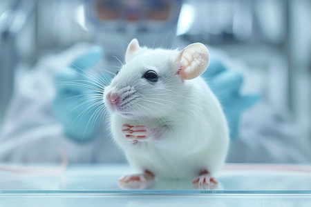A small mouse is carefully held in a gloved hand, highlighting the tender relationship between humans and animals. Perfect for themes in education or research.