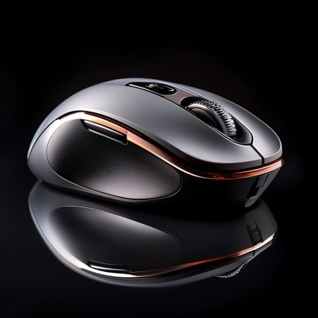 Explore the sleek design and features of a gaming mouse in a moody home office setup.